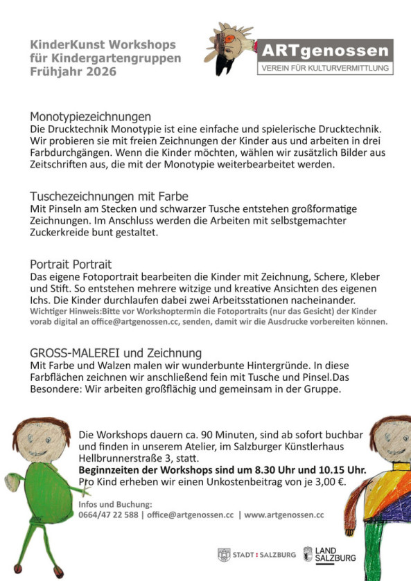 KinderKunstWorkshops für Kindergartengruppen Herbst 2023