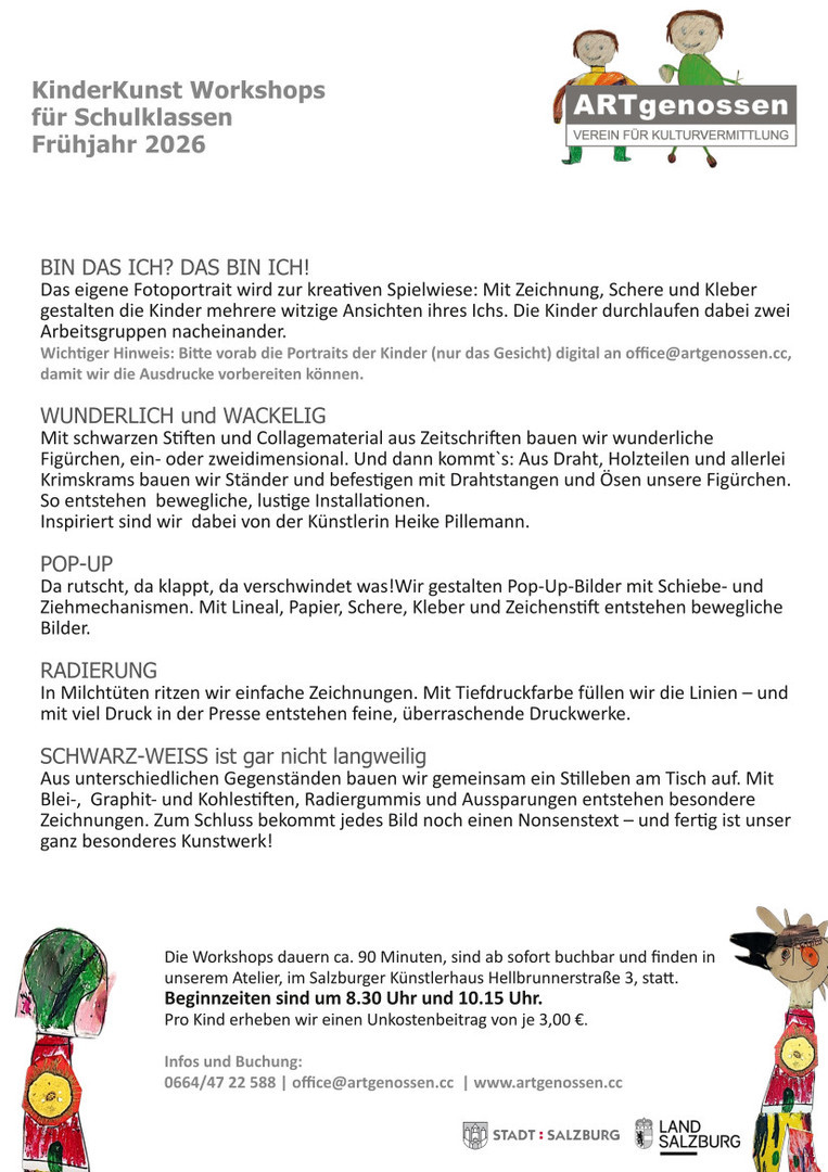 KinderKunstWorkshops für Schulklassen Herbst 2023