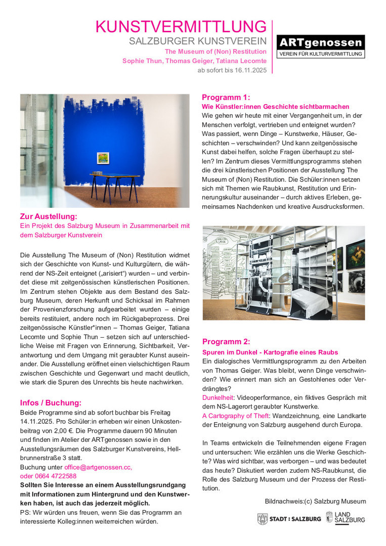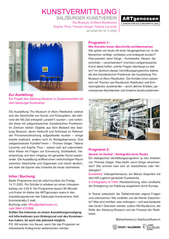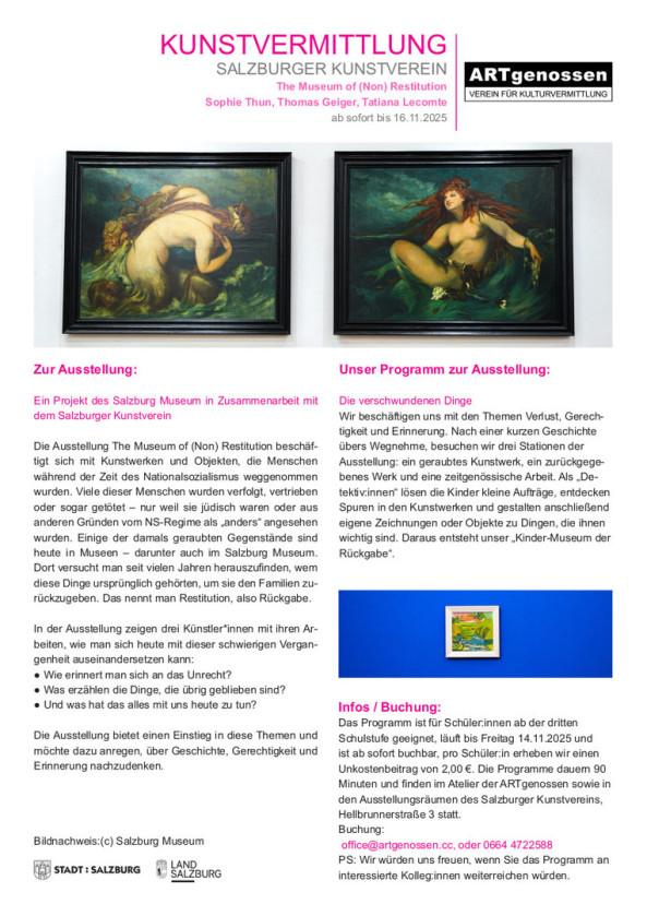 Zur aktuellen Aussellung bieten wir für Schüler:innen ab ca. 13 Jahren zwei Vermittlungsprogramme.